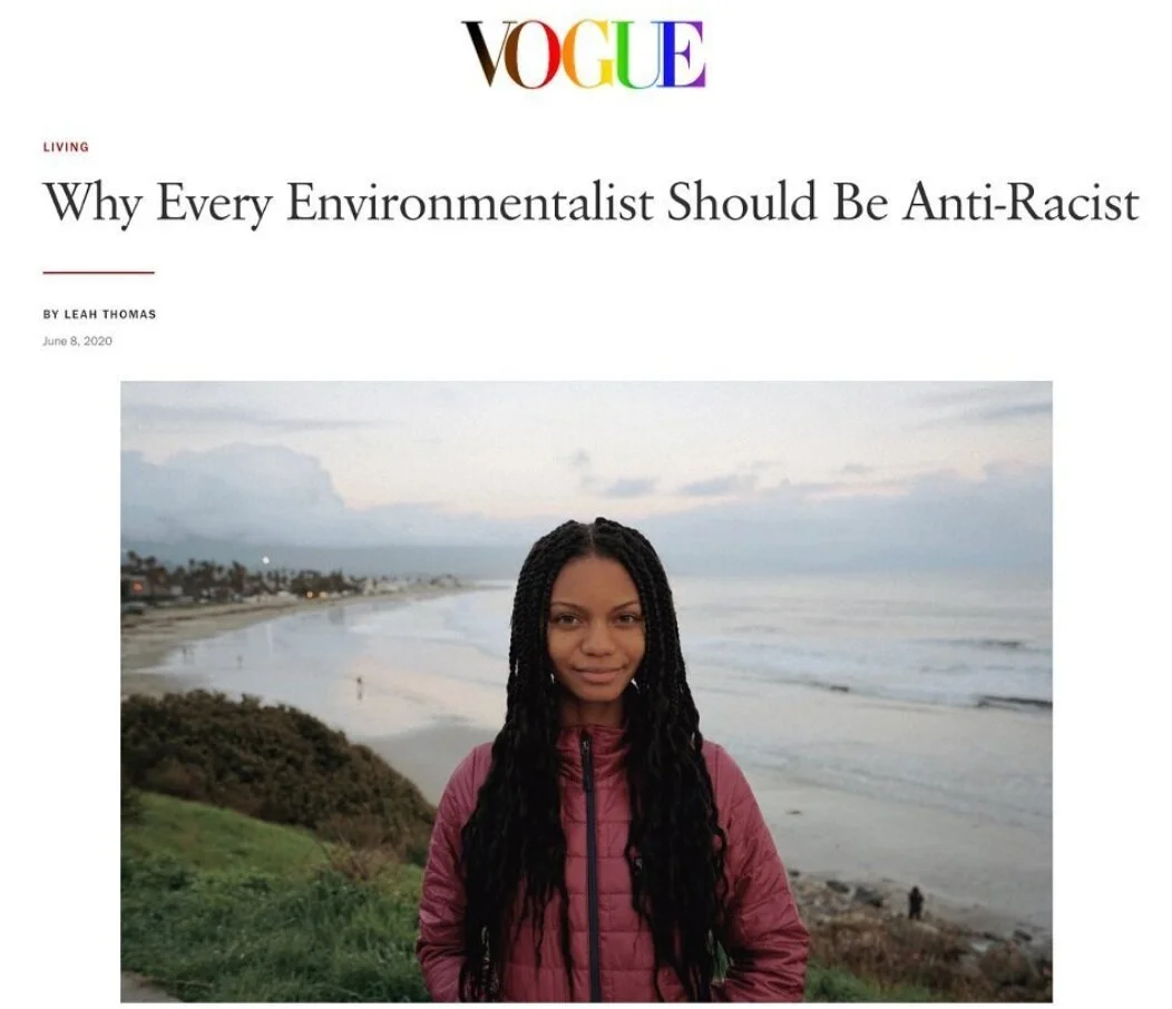 One of my favorite environmentalists is Leah Thomas, and her recent article in Vogue breaks down why all environmentalists don’t only need to be not racist, but antiracist.